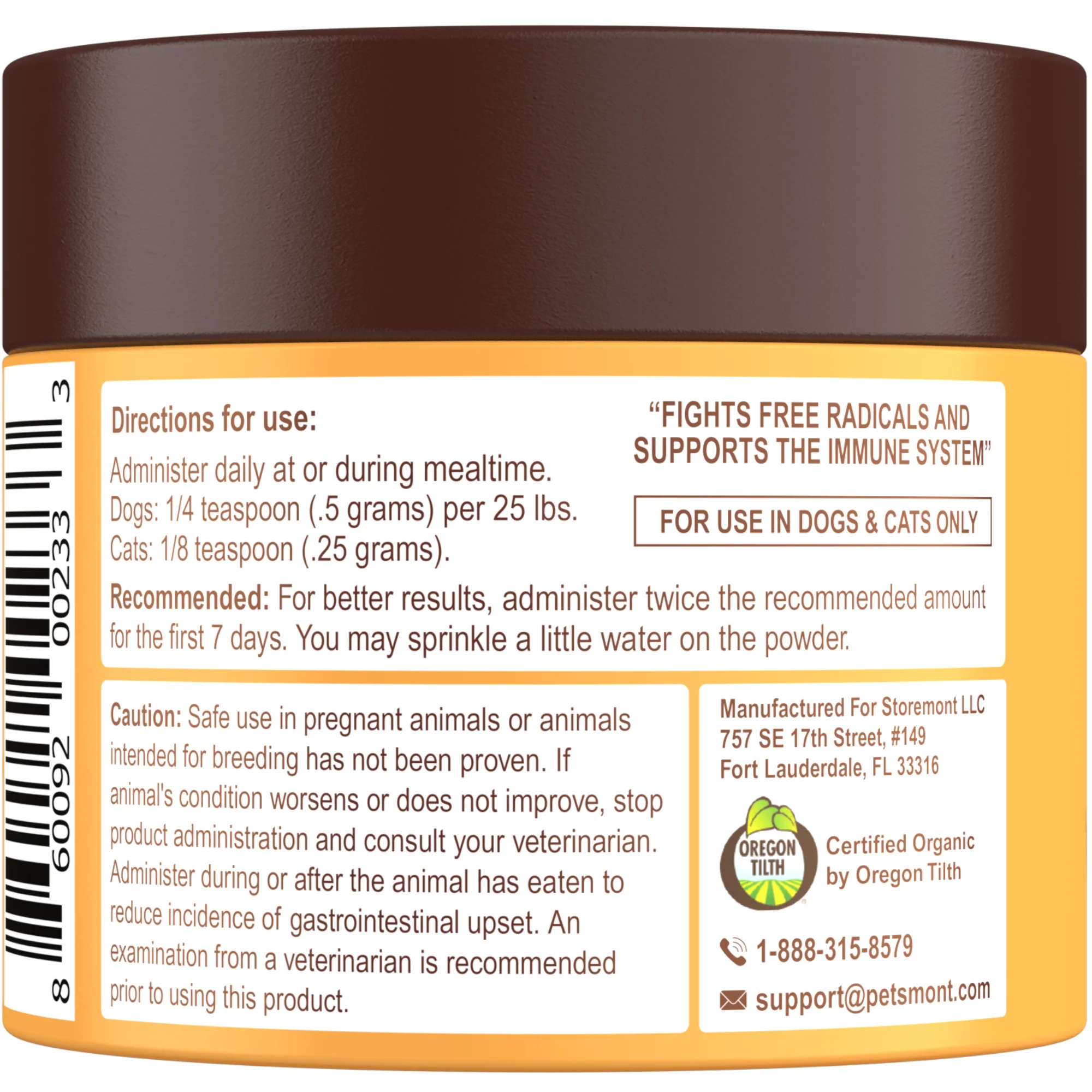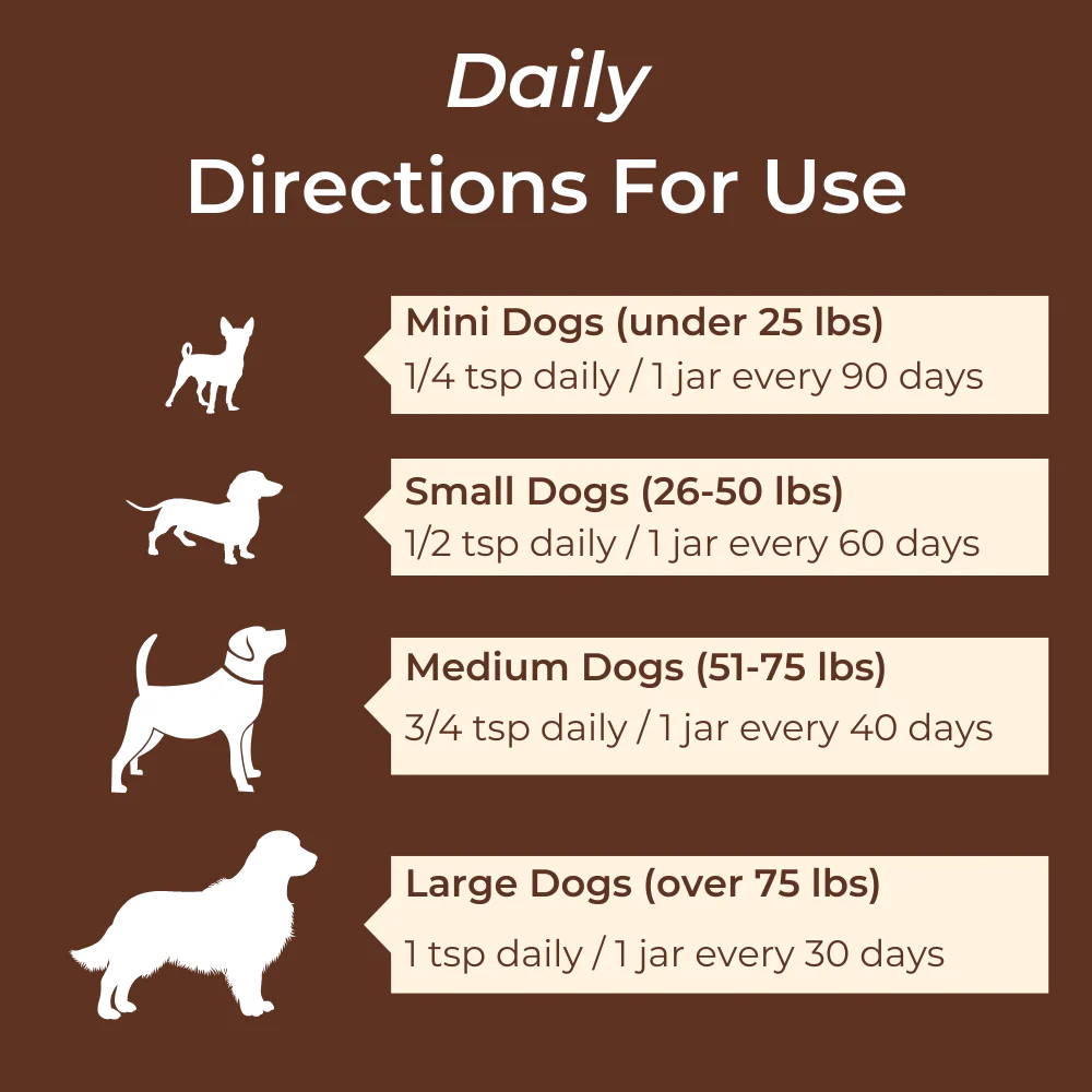 1. Administer 1/4 tsp (.5 grams) for every 25 lbs of body weight at or during mealtime.